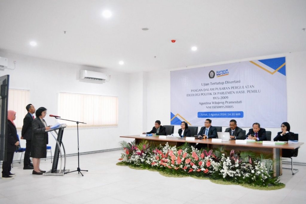 Agustina Wilujeng Pramestuti, Wakil Ketua Komisi X Dewan Perwakilan Rakyat Republik Indonesia, berhasil meraih gelar doktor pada Program Studi Doktor Sejarah Fakultas Ilmu Budaya Universitas Diponegoro (FIB UNDIP), setelah mempertahankan disertasinya di hadapan dewan penguji (2/8/2024). Disertasinya yang berjudul “Pangan dalam Pusaran Pergulatan Ideologi Politik di Parlemen Hasil Pemilu 1955-2009” mendapat apresiasi dari dewan penguji karena mengangkat isu menarik dan strategis.